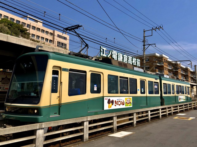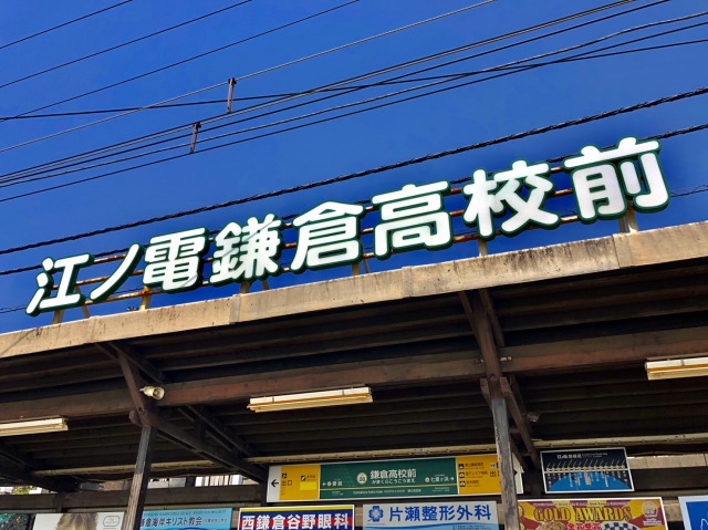 神奈川県鎌倉市腰越にある「関東の駅百選」選定の江ノ島電鉄・鎌倉高校前駅。