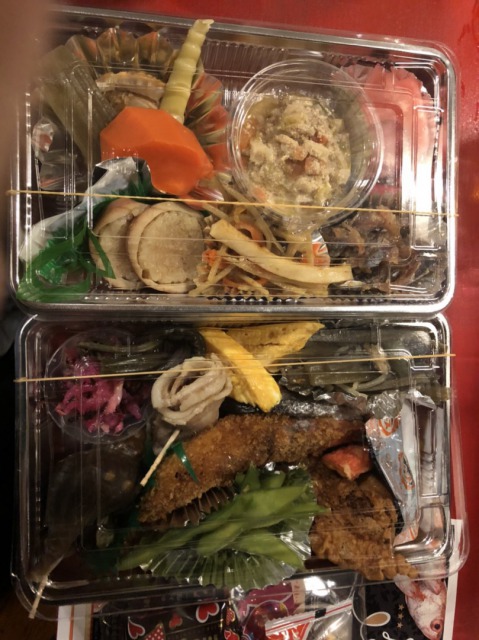出てきたおつまみ料理は、お弁当箱2個。とても美味しかった。