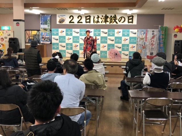 休憩場所の津軽中里駅では、催しがあって、汁の配給も。2時間たっぷり楽しめるイベントでした。