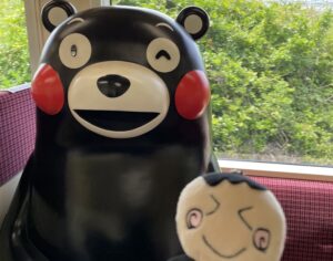 くまモンと並んで座って、美しい東シナ海が広がる車窓を眺める贅沢な時間。特に夕日がおすすめです!