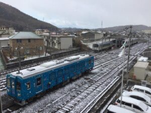 今朝はこの冬 初の雪 ☃️となりました。路面は凍結し沿線は大渋滞…日中も風が強く吹き時折雪花が舞っておりますので足元注意で!