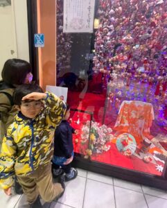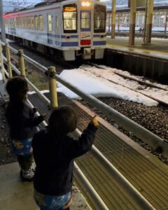年越しは新潟に行ってきました。写真は元日の夕方、ほくほく線が越後湯沢駅に入線してくるところです。越後湯沢駅改札出てすぐのおみやげ屋広場の一角。