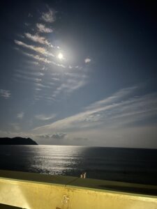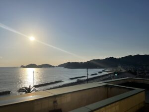 部屋のベランダから見える海は最高!夜と朝に写メしました。