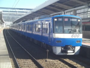京急600形(606編成)ブルースカイツリートレインは、京急各線(大師線を除く)の他、都営浅草線(押上ー西馬込)、京成本線・押上線(押上ー京成高砂ー成田空港)、北総線(京成高砂ー印旛日本医大)、成田スカイアクセス線(京成高砂ー新鎌ヶ谷ー印旛日本医大ー成田空港)と幅広く運転しており、京急車特別塗装運用で注目されています。